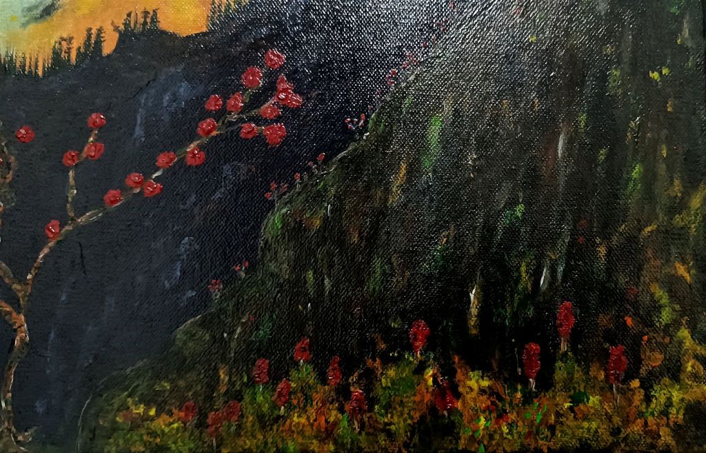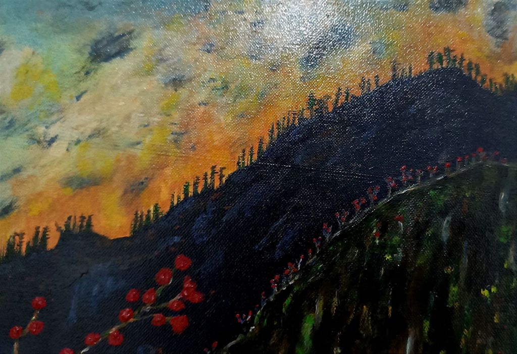 The work began in 2004 in the town of Redován. The first thing the author wanted to capture was the mountains of her own hometown. Due to various changes of direction, the work was never finished and remained unfinished in her parents’ home for 20 years.