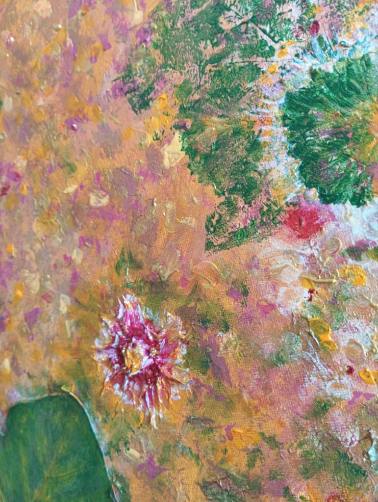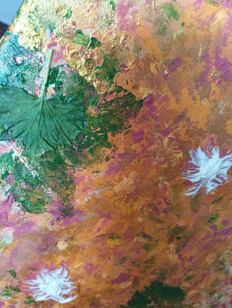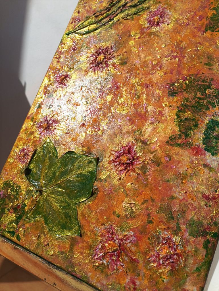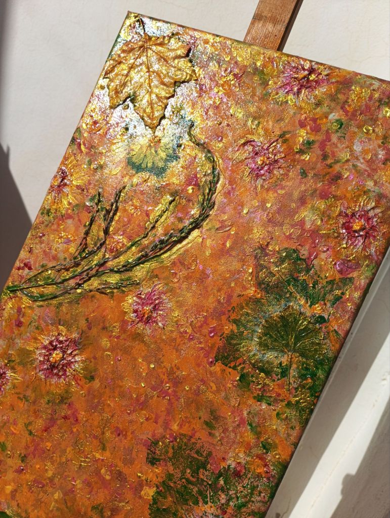 Artwork in acrylic, putty and organic materials.